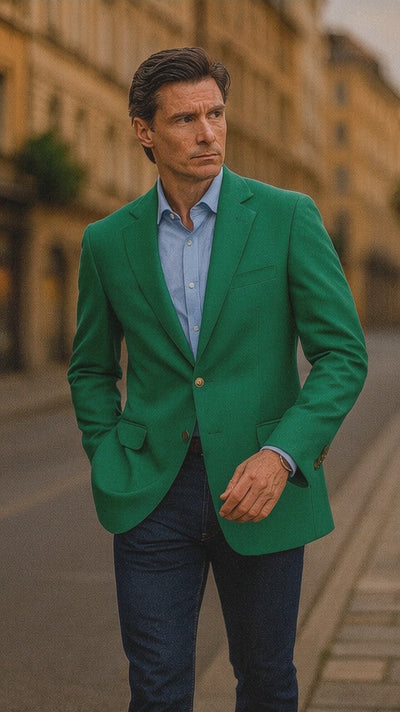 Whether paired with dress trousers for a sharp business outfit or dressed down with jeans for a smart-casual vibe, this green blazer adds a fresh pop of color to any wardrobe. Available now at a special sale price, it’s the perfect time to invest in a standout piece that combines affordability and high fashion.