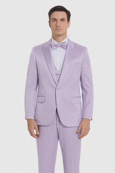 Men's Lavender Satin 3 Piece Slim Fit Tazzio Suit with Peak Lapel – Stylish Modern