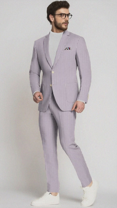 Mens Lavender Seersucker Suit Blazer + Pants Cotton Fabric - Summer Fabric