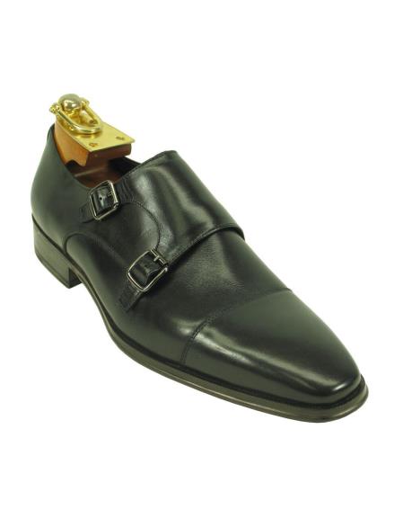 Men's Leather Double Buckle Style Black Fashionable Carrucci Ombre Black Dress Shoe