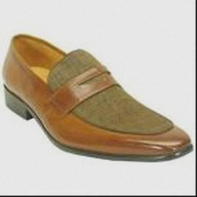 The denim-inspired details add a unique, fashion-forward touch that sets these Carrucci loafers apart from traditional dress shoes. Combined with the warm cognac leather, the design strikes the perfect balance between contemporary style and classic sophistication. Inside, the shoe features a soft leather lining for breathability and a cushioned insole that ensures all-day comfort. The sturdy outsole provides stability and durability, making them suitable for both frequent wear and special occasions.