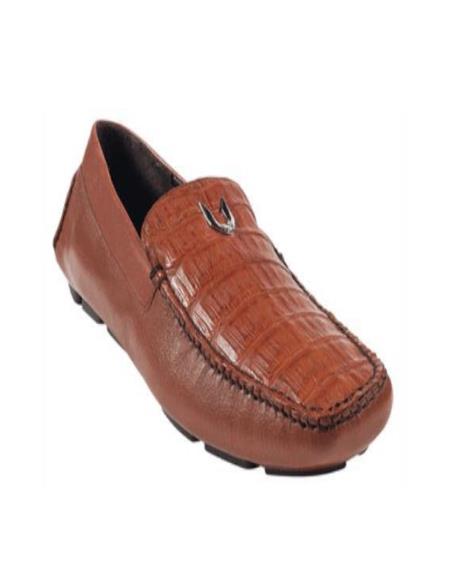 • Men's Cognac Genuine Caimen Belly Driver