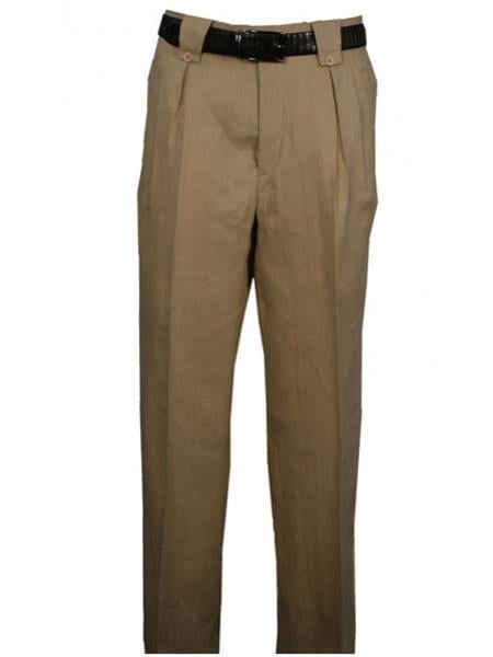 Men's Linen Wide Leg Pleated Pant Tan Men's Wide Leg Trousers