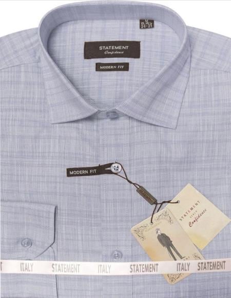 Mens Long Sleeve 100% Cotton Shirt - Light Texture - Blue