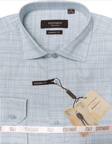 Mens Long Sleeve 100% Cotton Shirt - Light Texture - Turquoise