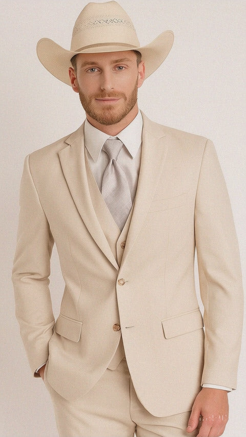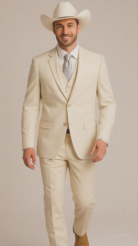 Mens Natural - Sand Cowboy Tuxedo - White Cowboy Suit - Western Suit (Jacket + Pants)