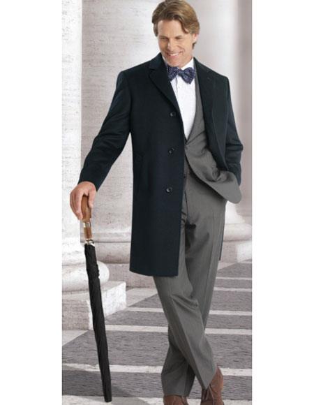 Men's Navy 3 Buttons Long Jacket Modern Fit Overcoat