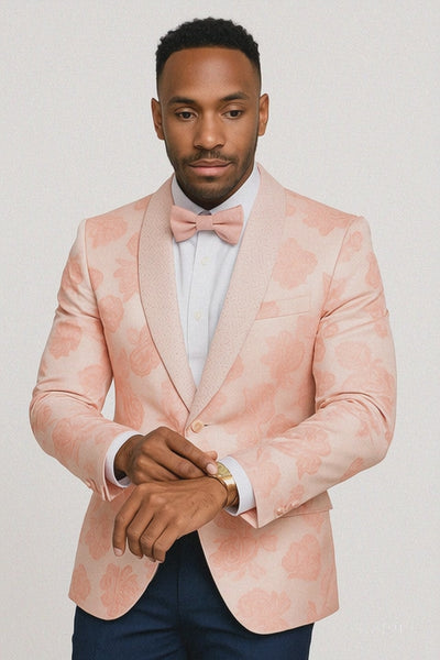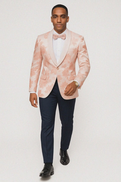Mens Paisley Jeweled Shawl Prom Tuxedo in Blush Pink