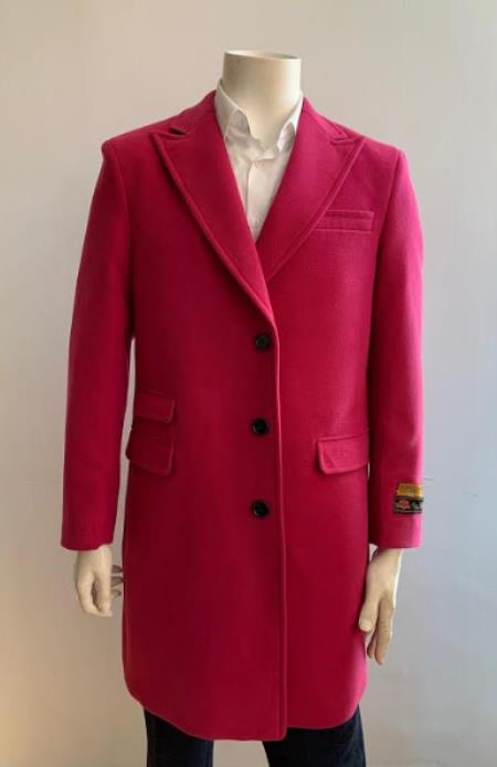 Men's Pink Overcoat - Megento Color Topcoat - Ticket Pocket Peak Collar