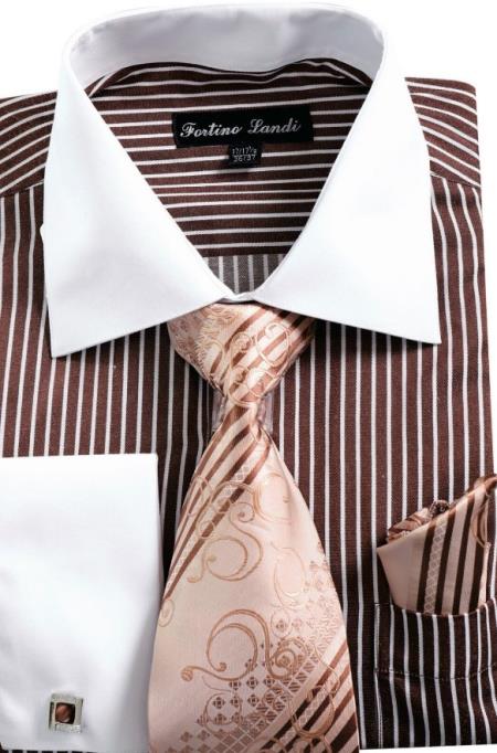 Mens Pinstripe Dress Shirt Brown