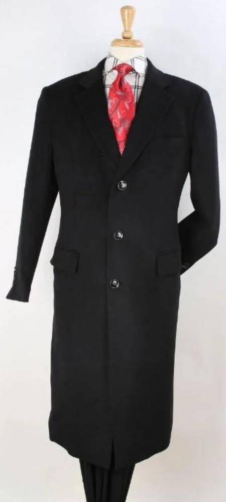Men's Plaid Overcoat - Plaid Topcoat Black