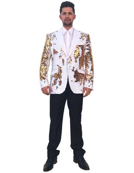 Men's Shiny Sequin 2 Button Cheap Priced Designer Fashion Dress Casual Blazer For Men On Sale Gold ~ White Blazer ~ Sport Coat