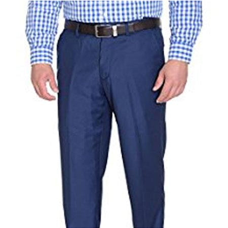 Men's Slim Fit Polyester Blend Solid Blue Flat Front Pant (We have more Braveman suits Call 1-844-650-3963 to order)