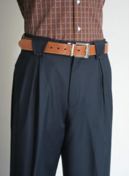 Men's Super 150's 100% Wool Wide Leg Dress Pants / Slacks Navy unhemmed unfinished bottom