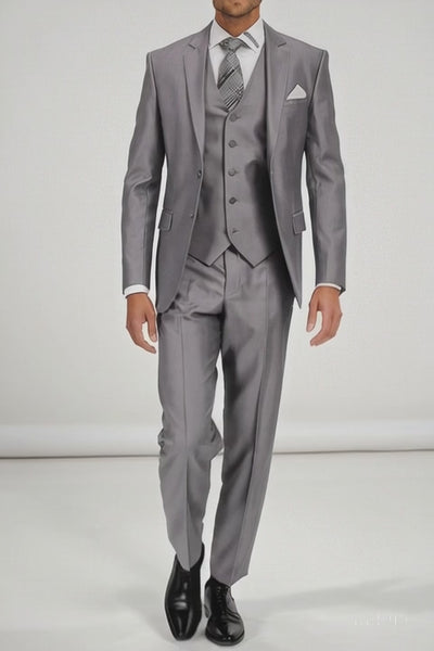 - Grey Vested Men's Suit Single Breasted 2 button brand newest Shark Skin Suit.