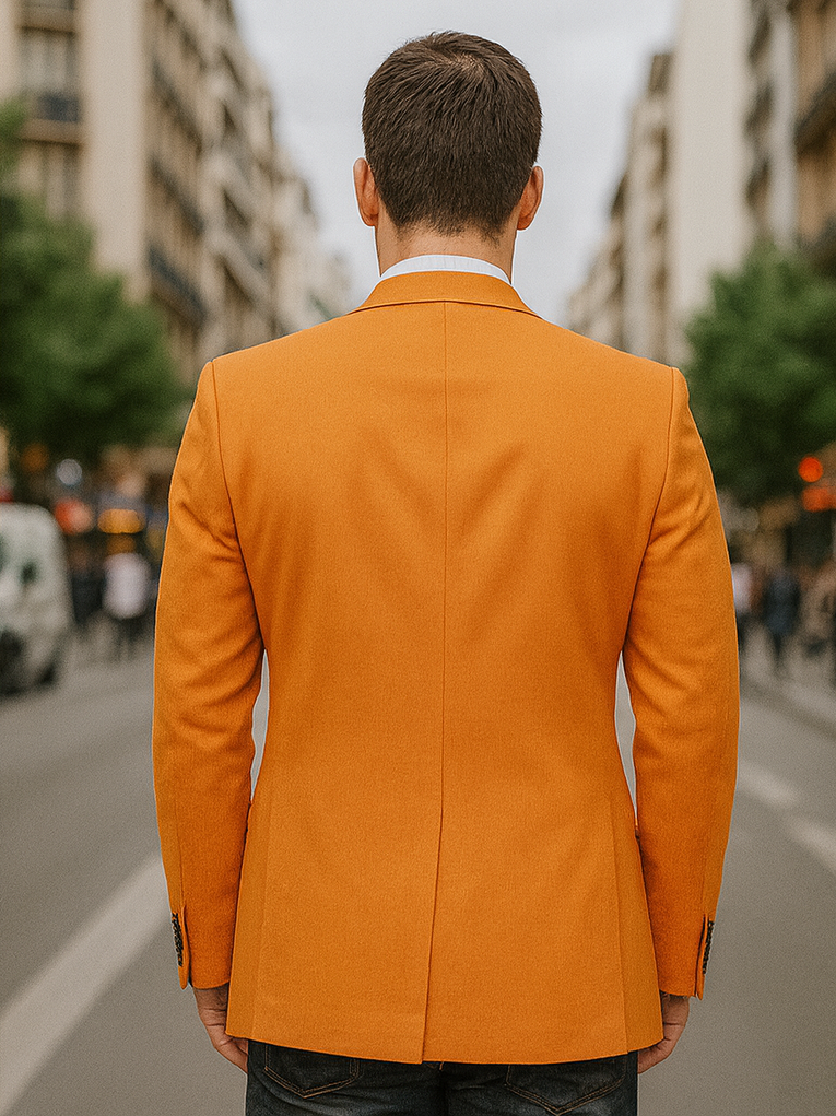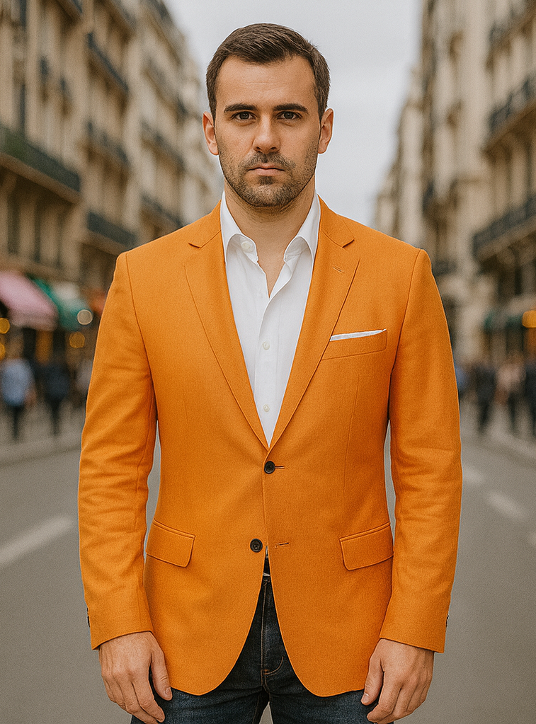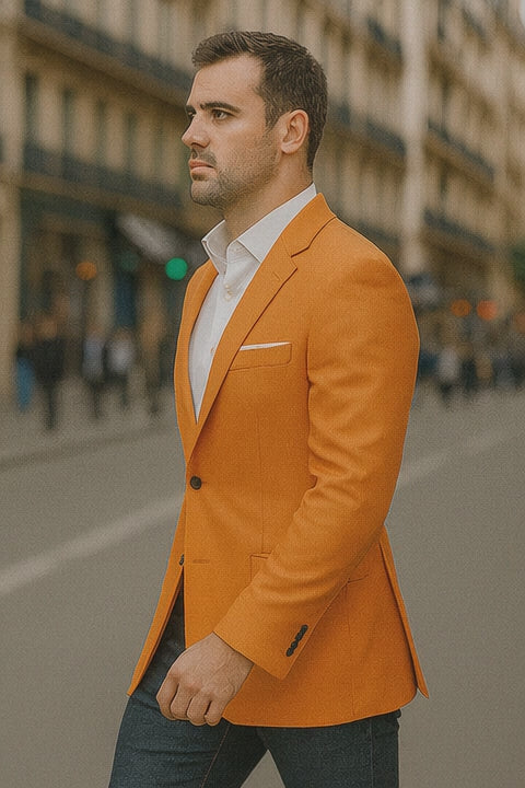 The Men's Orange Linen Summer Blazer with peak lapels is a must-have for warm-weather wardrobes that prioritize both style and comfort. Whether you're headed to a summer wedding, a vacation dinner, or an elegant casual event, this blazer ensures you stand out with taste and confidence. Lightweight, breathable, and fashion-forward—it’s summer dressing done right.