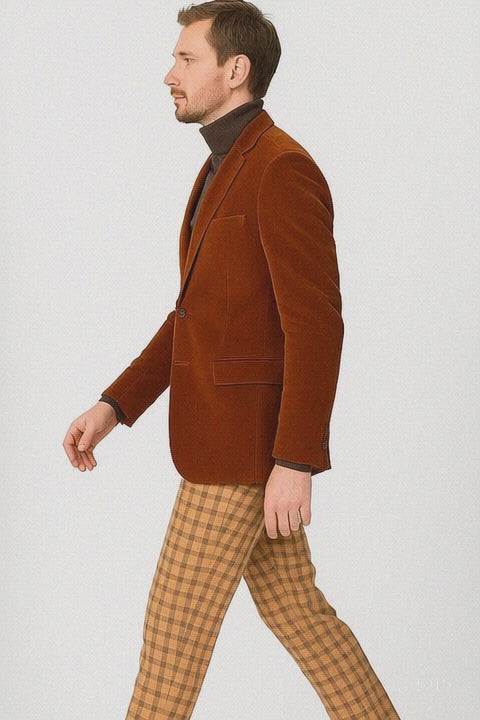 Men’s Rust Velvet Jacket – Tailored Fit Blazer for Formal & Casual Style