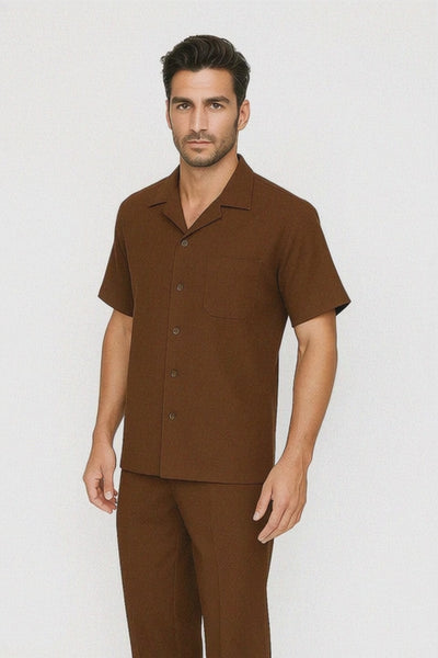 Men’s Cognac Walking Suit – Leisure & Casual Matching Shirt and Pants Set - $99