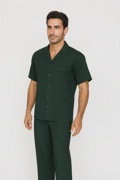 Mens Walking Suit in Color hunter green leisure suit casual Matching Shirt and Pants $99