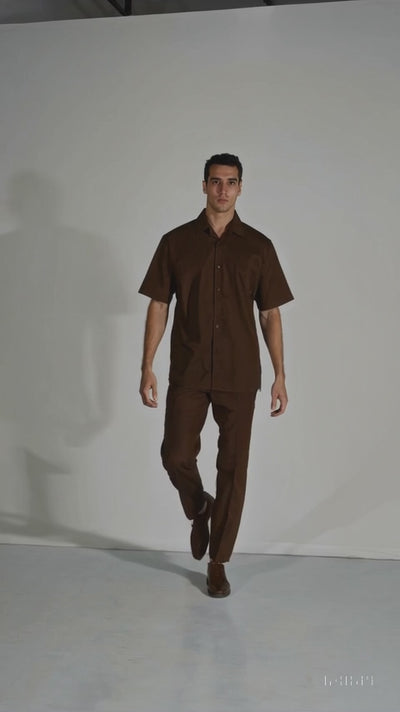 Mens walking suits casual two piece sets Summer Short Sleeve Shirt & Pants Casual Two Piece Mens Walking Outfit For Sale Pant Sets Casual Suit Set Men's Suit 100% Mens Linen Suit - Fabric – Brown