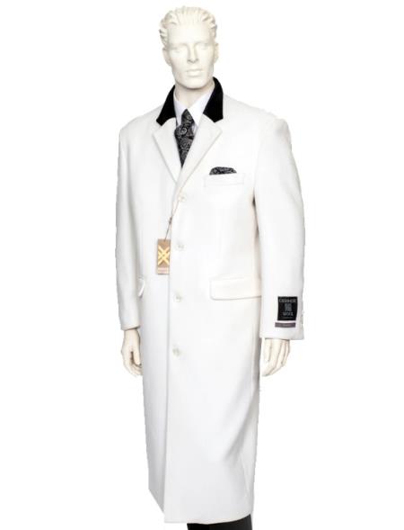 Mens White One Chest Pocket Full Length Coat Duster Maxi Coat