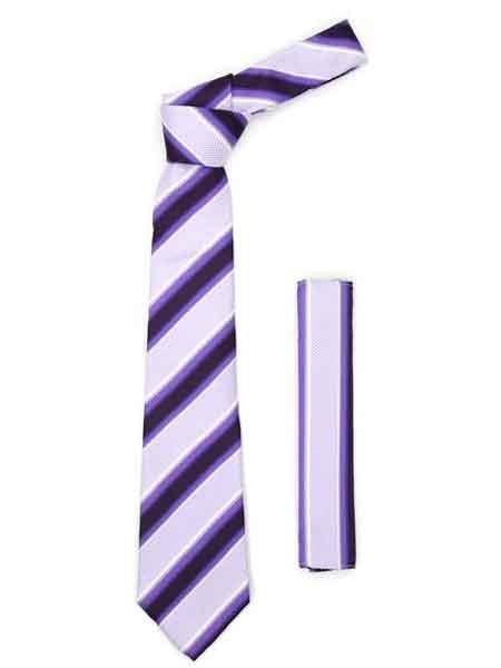 Microfiber Purple Lavender Striped Fashionable NeckTie With Hankie Set - Men's Neck Ties - Mens Dress Tie - Trendy Mens Ties