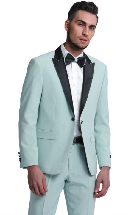 Mint Green Tuxedo Slim Fit Peak Lapel Suit