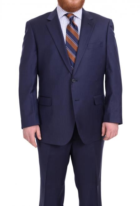 Mix and Match Suits Men's Dark Navy Blue Suit For Men Portly Fit Two Button Super 130's Suit Executive Fit Suit - Mens Portly Suit
