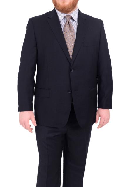 Mix and Match Suits Men's Two Button Portly Solid Dark Navy Blue Suit For Men Super 140's Suit Executive Fit Suit - Mens Portly Suit