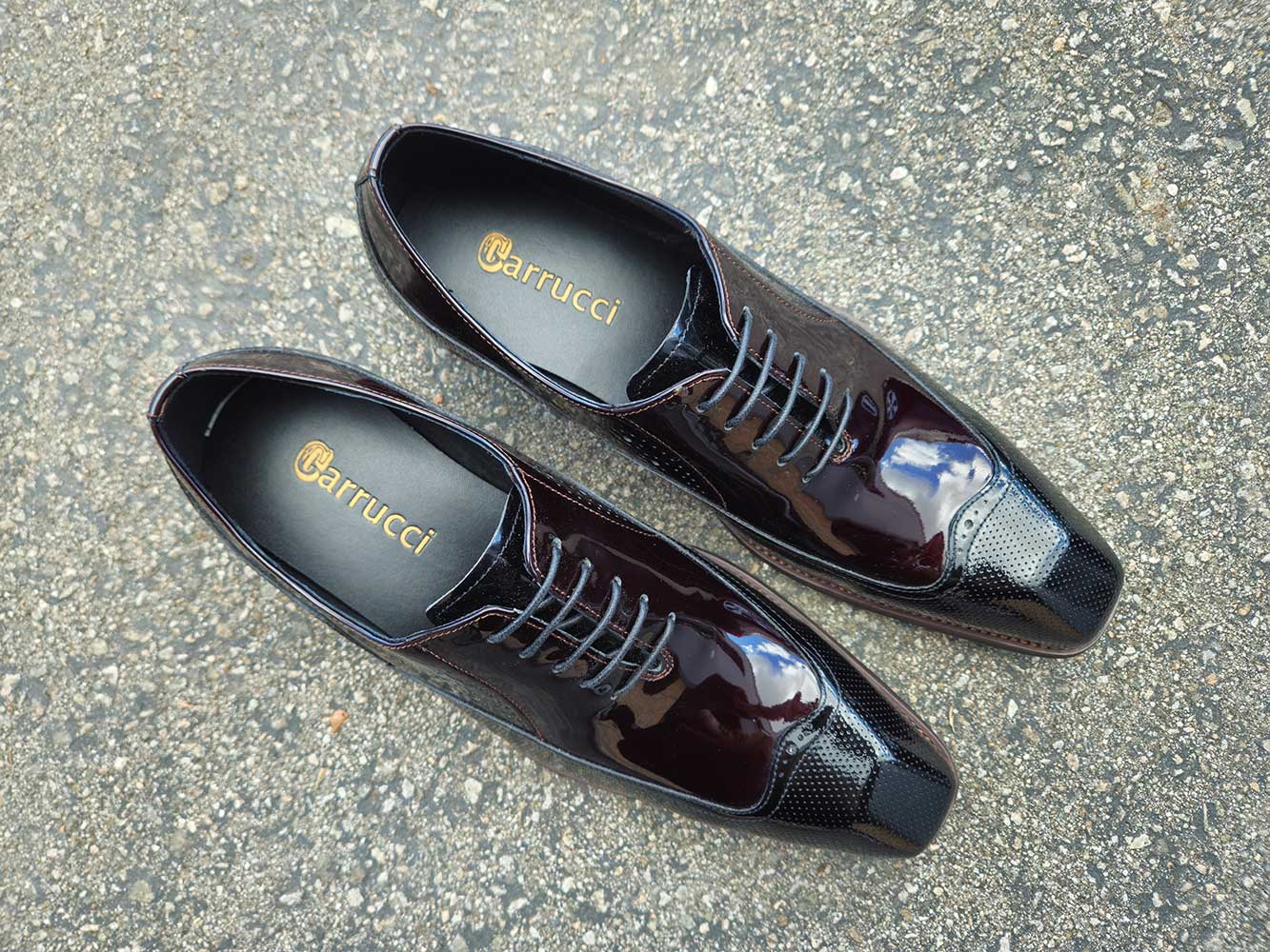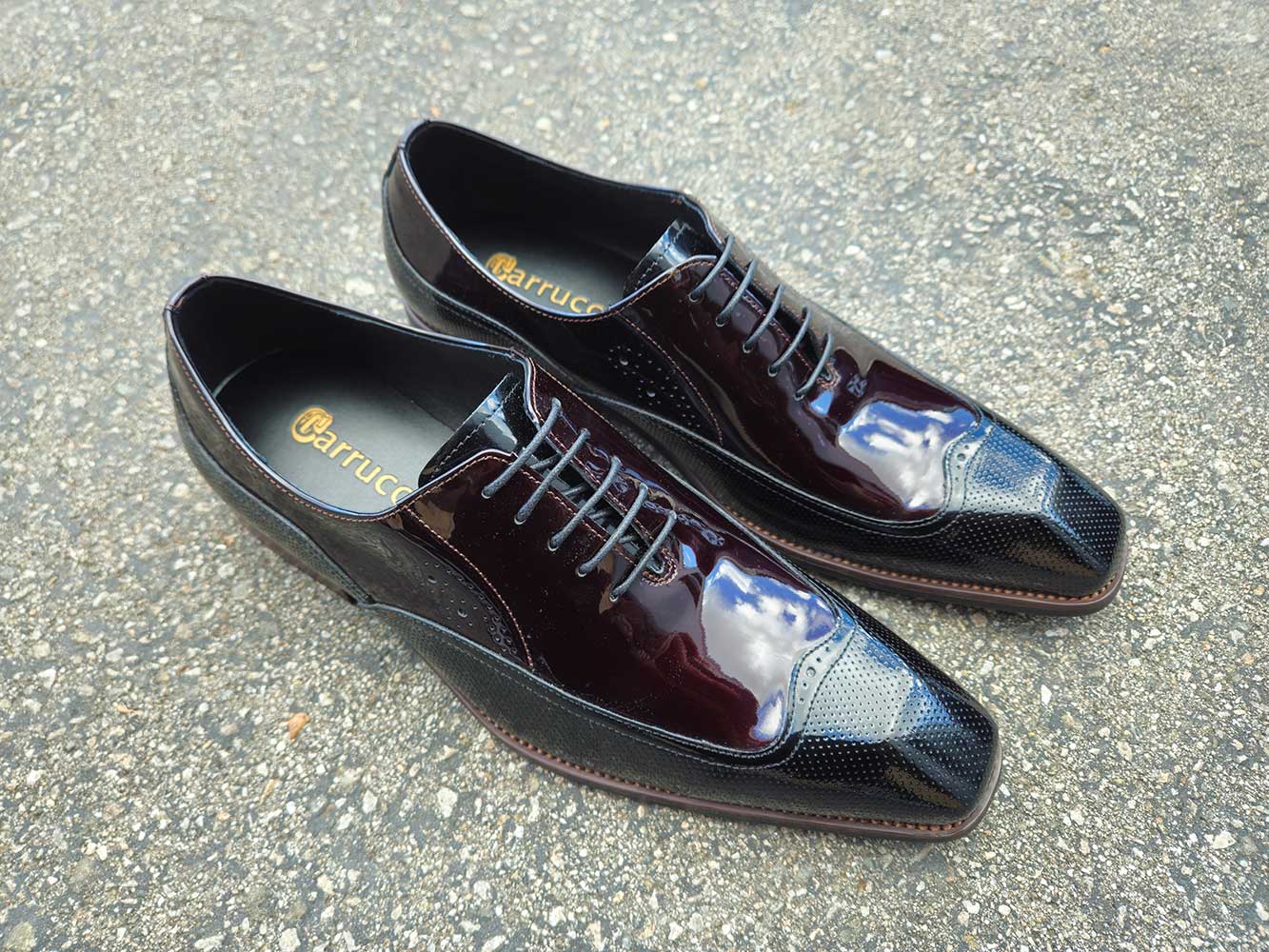 Modern Patent Leather Oxford, patent leather and textured calfskin upper, leather lining and man-made sole.?˜