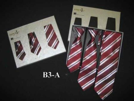 Mytie Father And Sons Burgundy ~ Wine ~ Maroon Color Stain Resistant With Matching Ties Set - Men's Neck Ties - Mens Dress Tie - Trendy Mens Ties