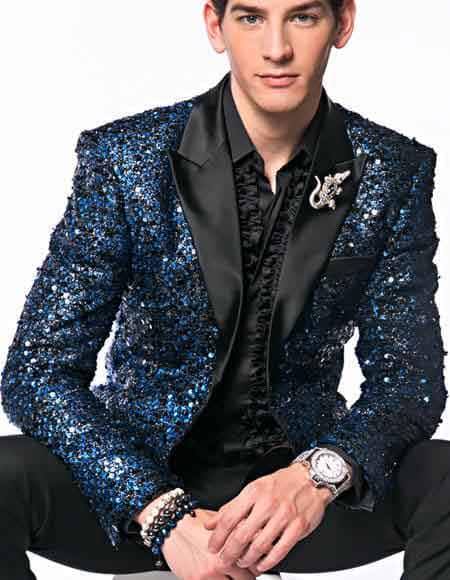 Navy Blue Sequin Blazer - Flashy Tuxedo - Prom Jacket