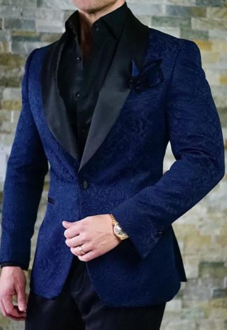 Navy Blue Velvet Blazer - Paisley Blazer - Blue Dinner Jacket - Floral Tuxedo