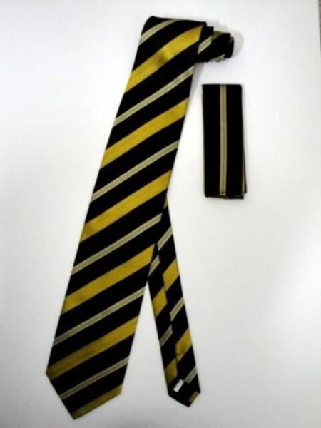 Neck Tie Set Black Gold patterned Stripes - Men's Neck Ties - Mens Dress Tie - Trendy Mens Ties