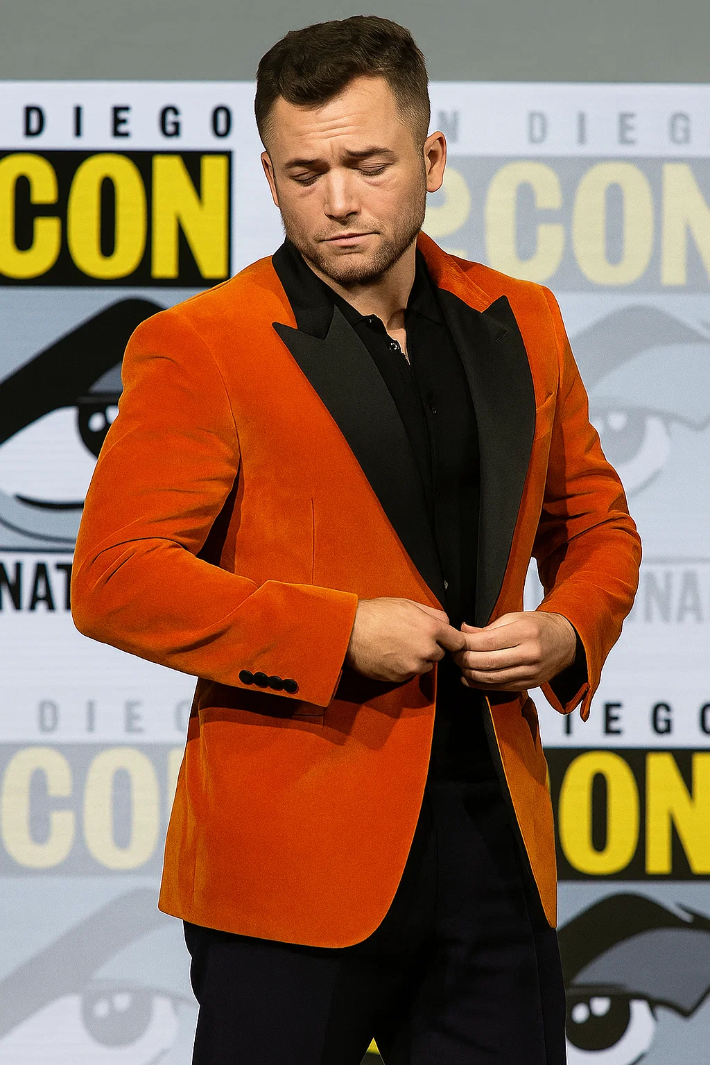 The rich orange hue instantly elevates your outfit, adding energy and personality to any look. Perfect for weddings, red-carpet events, performances, or upscale parties, this blazer’s vibrant tone ensures you leave a lasting impression. Its black peak lapel provides a sharp contrast, lending a luxurious, tuxedo-inspired touch to the design.
