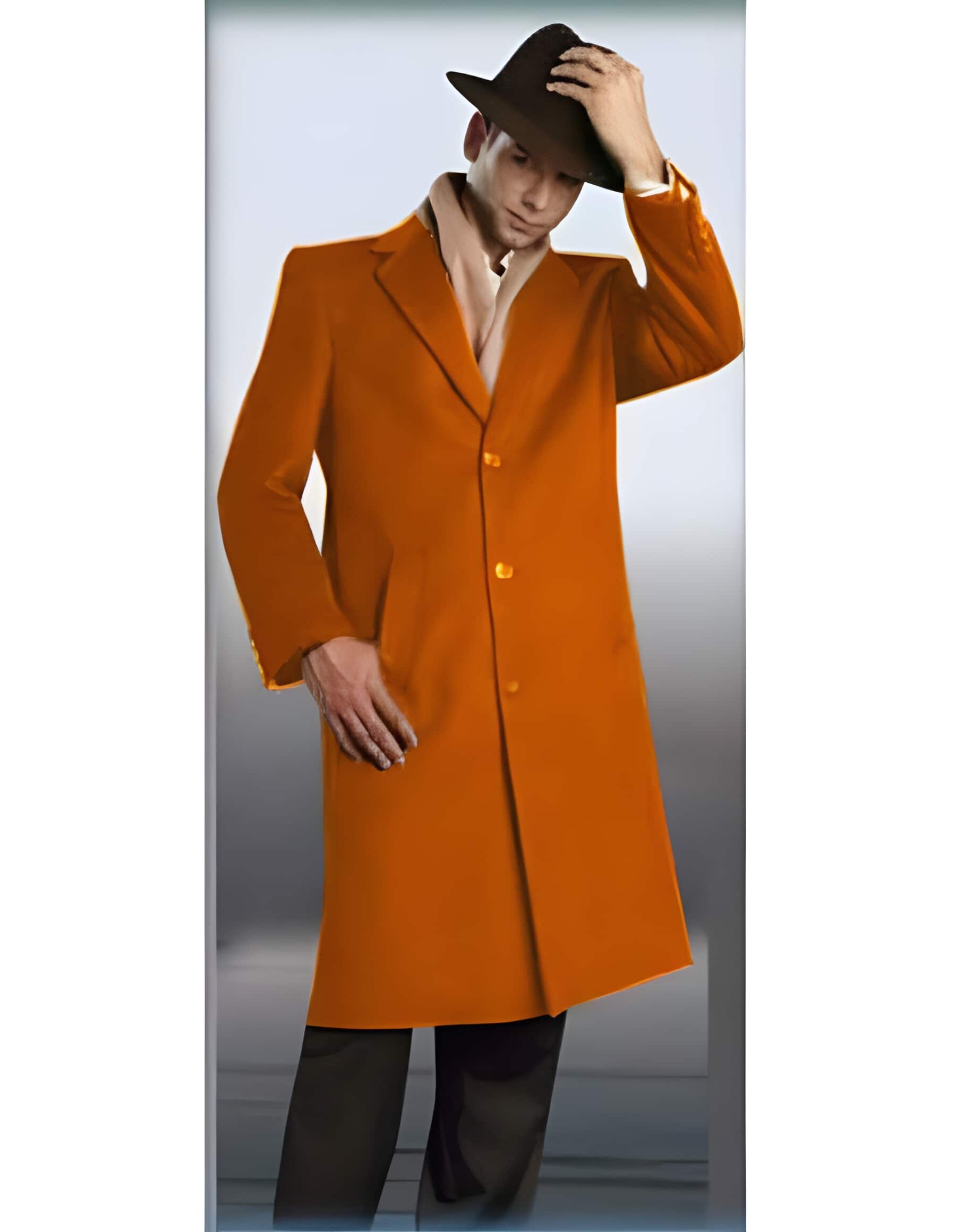 Orange Overcoat - Orange Three Quarter Mens Wool Car Coat - Mid Length Topcoat