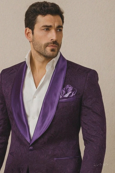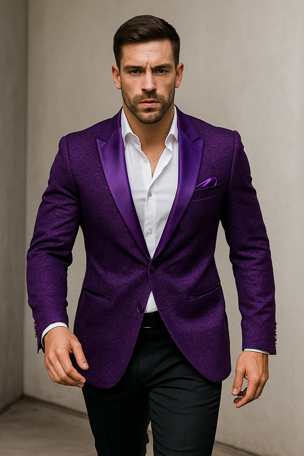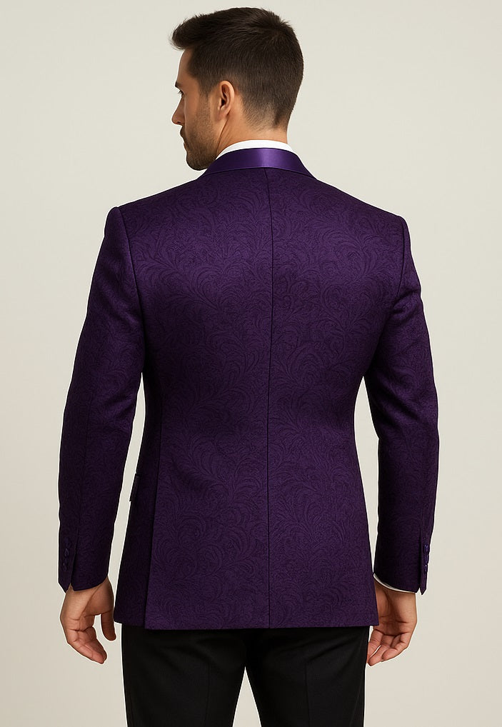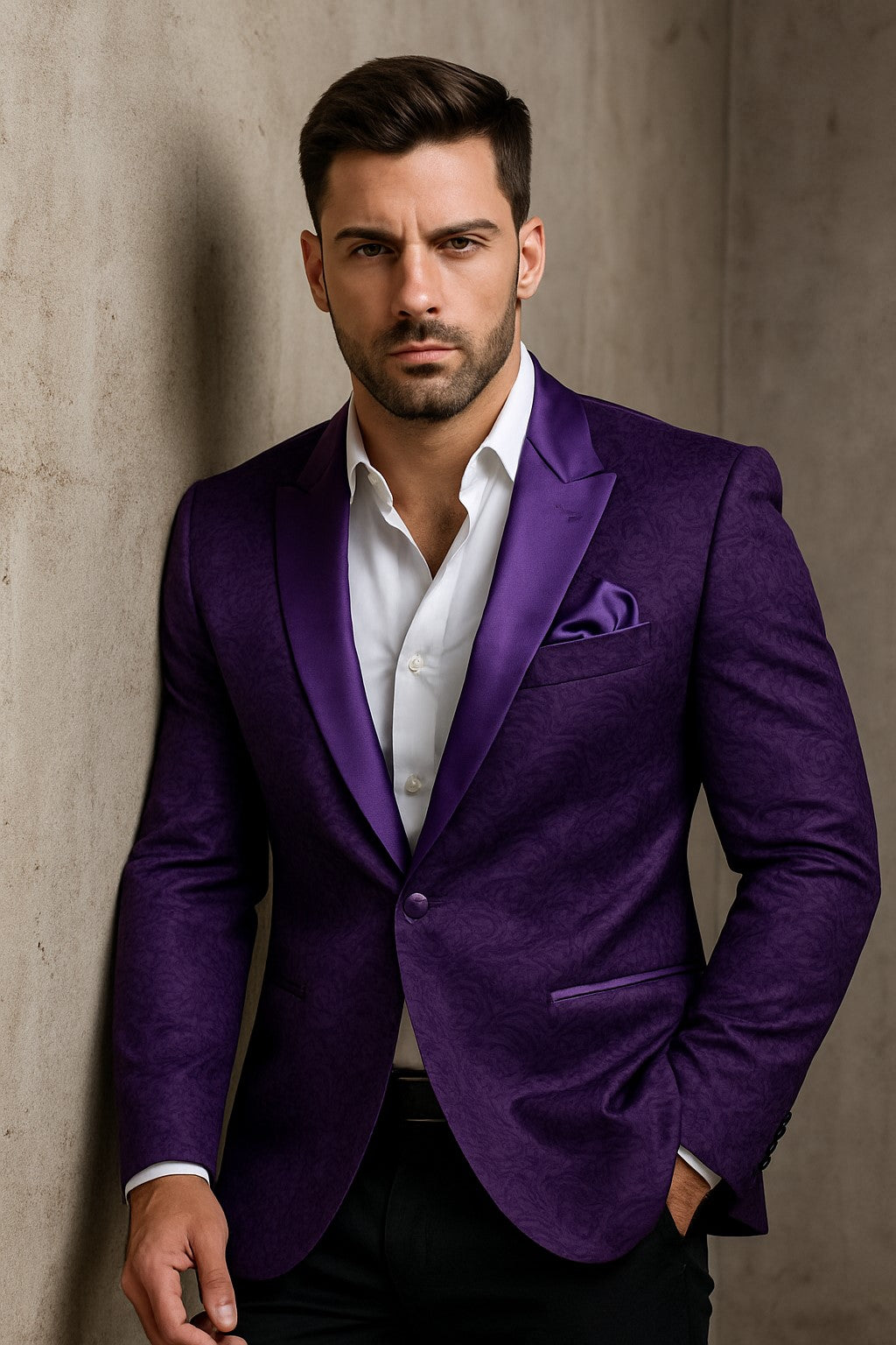 Make a bold fashion statement with this Paisley Floral Blazer in Midnight Plum, a standout tuxedo jacket designed to bring elegance, personality, and modern flair to any occasion. Crafted with a richly textured paisley floral pattern, this men’s blazer exudes confidence and charm, making it the perfect choice for weddings, proms, formal parties, or stylish nights out.