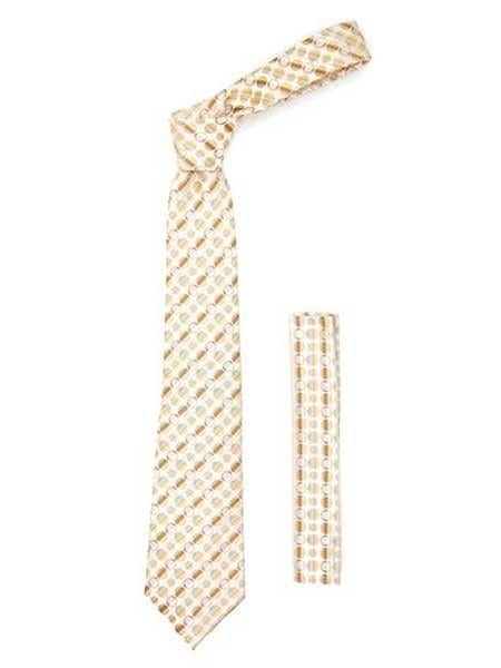 Polkadot Stripe Fashionable Necktie With Handkerchief Set Beige- Men's Neck Ties - Mens Dress Tie - Trendy Mens Ties