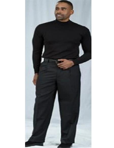 Poplin Fabric Pacelli Big and Tall Wide Leg Pants Black