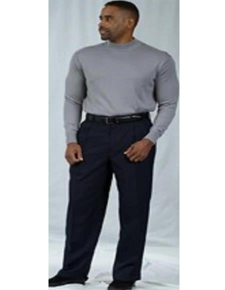 Poplin Fabric Pacelli Big and Tall Wide Leg Pants Navy