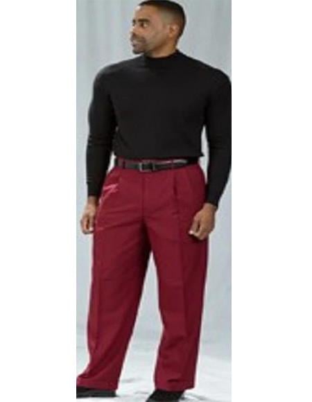 Poplin Fabric Pacelli Big and Tall Wide Leg Pants Burgundy 810006