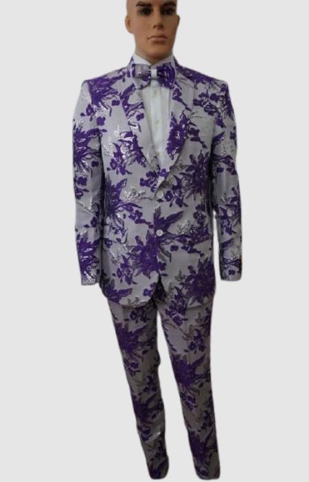 Prom Suits - Wedding Suit - Paisley Suit - Floral Suit + Matching Bowtie