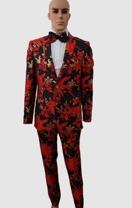 Prom Suits - Wedding Suit - Paisley Suit - Floral Suit + Matching Bowtie