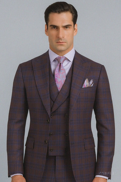 Purple Modern Fit Windowpane Peak Lapel 3 Piece Suit