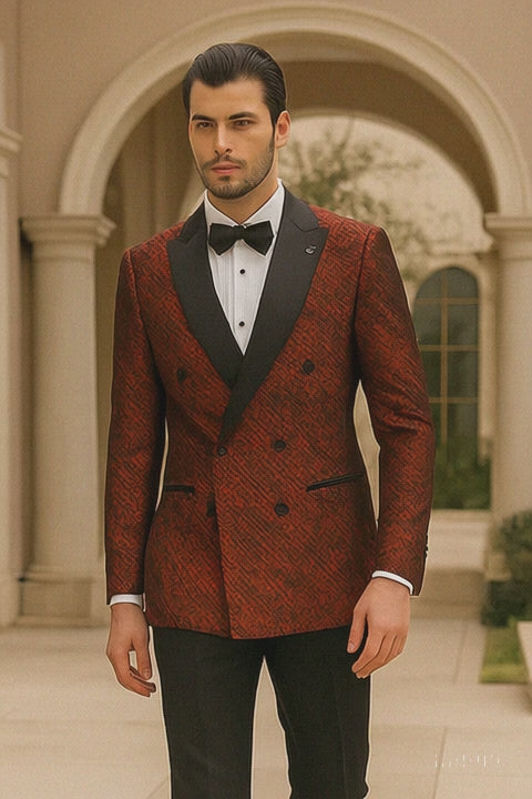 Red Double Breasted Rough Streak Pattern Satin Peak Lapel Stacy Adams Men's Jacket