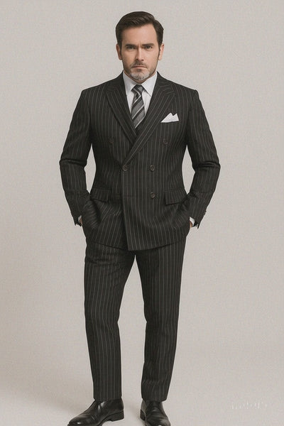 Rockefeller Collection - Double Breasted Stripe Suit Black Regular Fit 2 Piece is all about that confident, sharp look. Crafted by Vinci, it brings a touch of modern edge and trusted tailoring to every outfit.