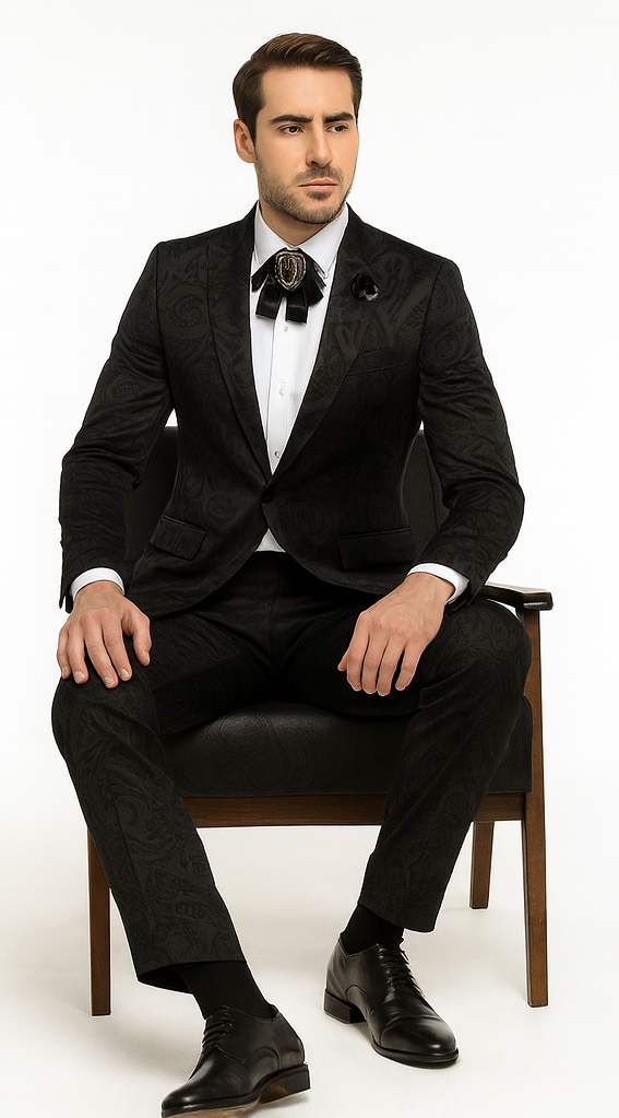 Styling the LEO RM1907 2-Piece Suit is effortless. For a traditional formal look, pair it with a white dress shirt and classic tie. For a modern edge, opt for a black or patterned shirt with a pocket square and polished dress shoes. The suit’s contemporary cut makes it suitable for both professional and celebratory settings — a true all-rounder in every man’s wardrobe.