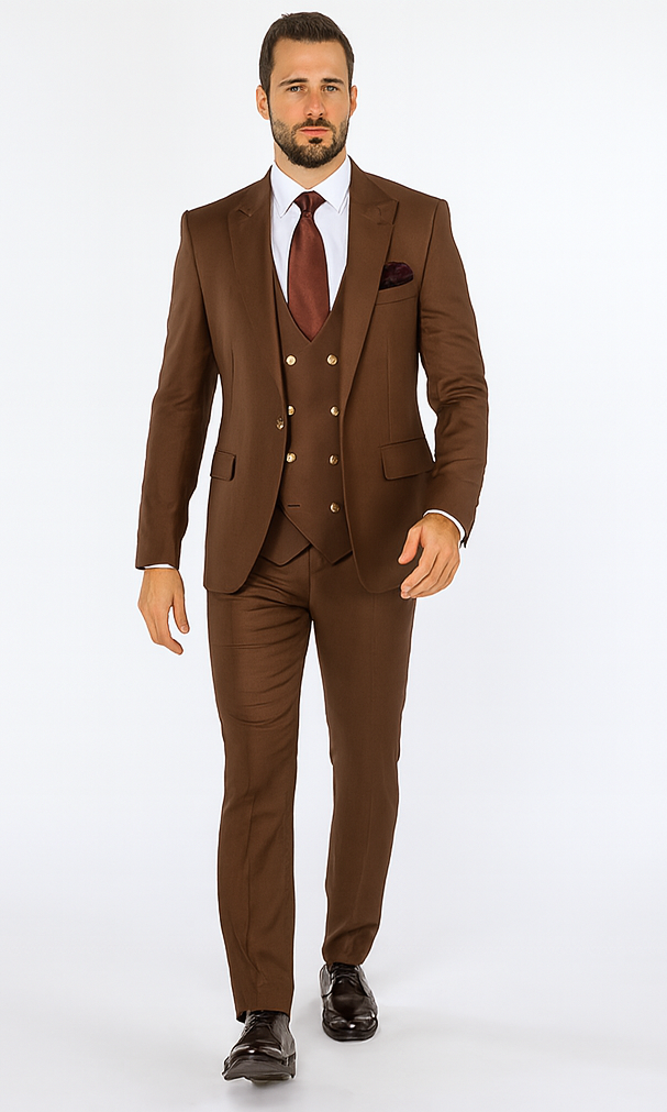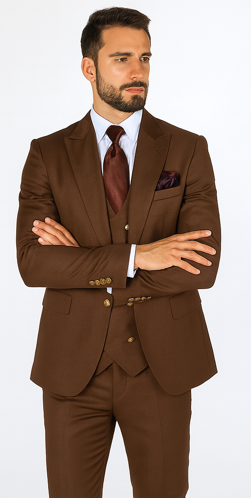 Rossi Man MAX RM1392 Brown Slim Fit 3-Piece Suit – Men’s Formalwear