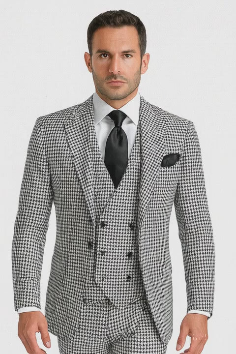 Rossi Man MAX RM1710 Slim Fit 3-Piece Black and White Houndstooth Suit