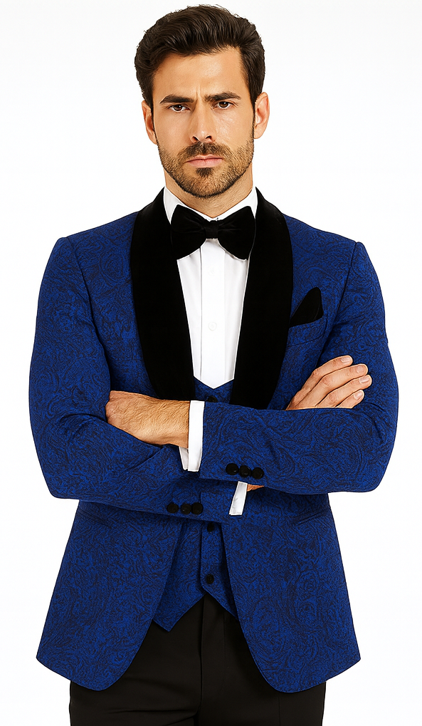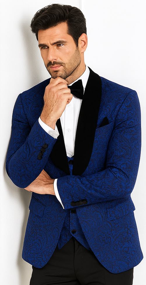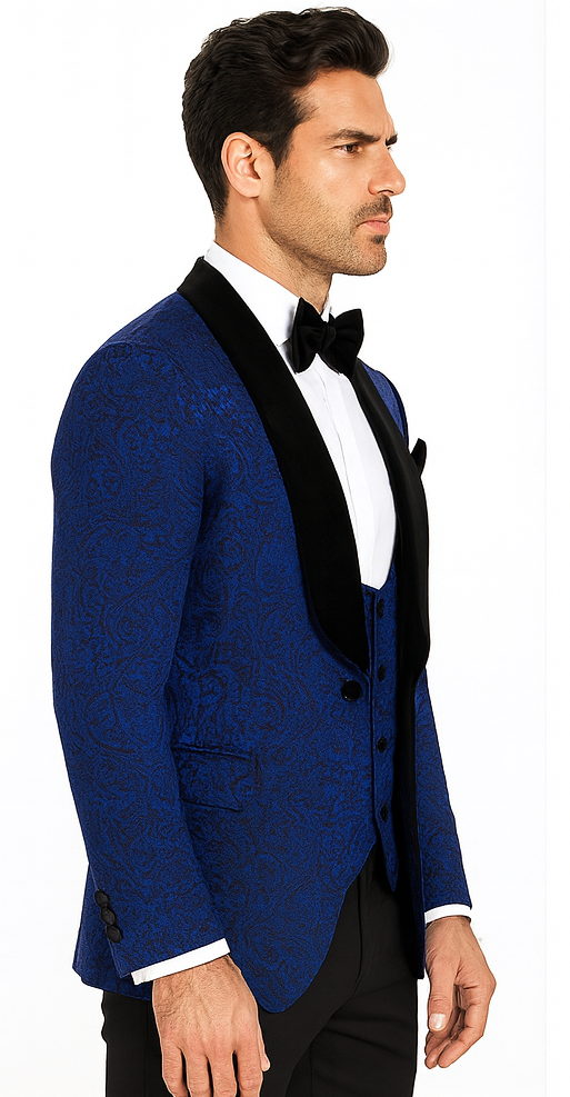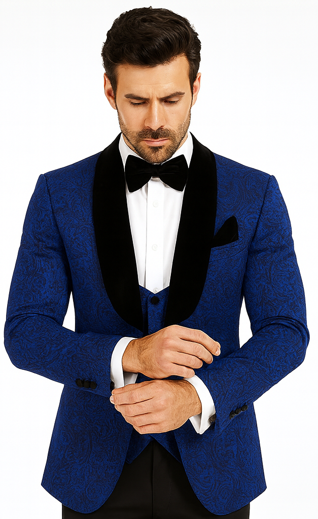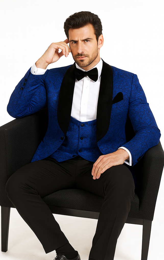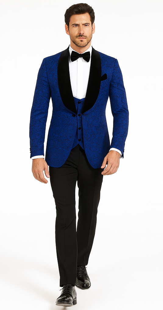 Rossi Man RM1483 – Slim Fit Smoking Style 3-Piece Tuxedo for Men - Elegant Modern Formalwear